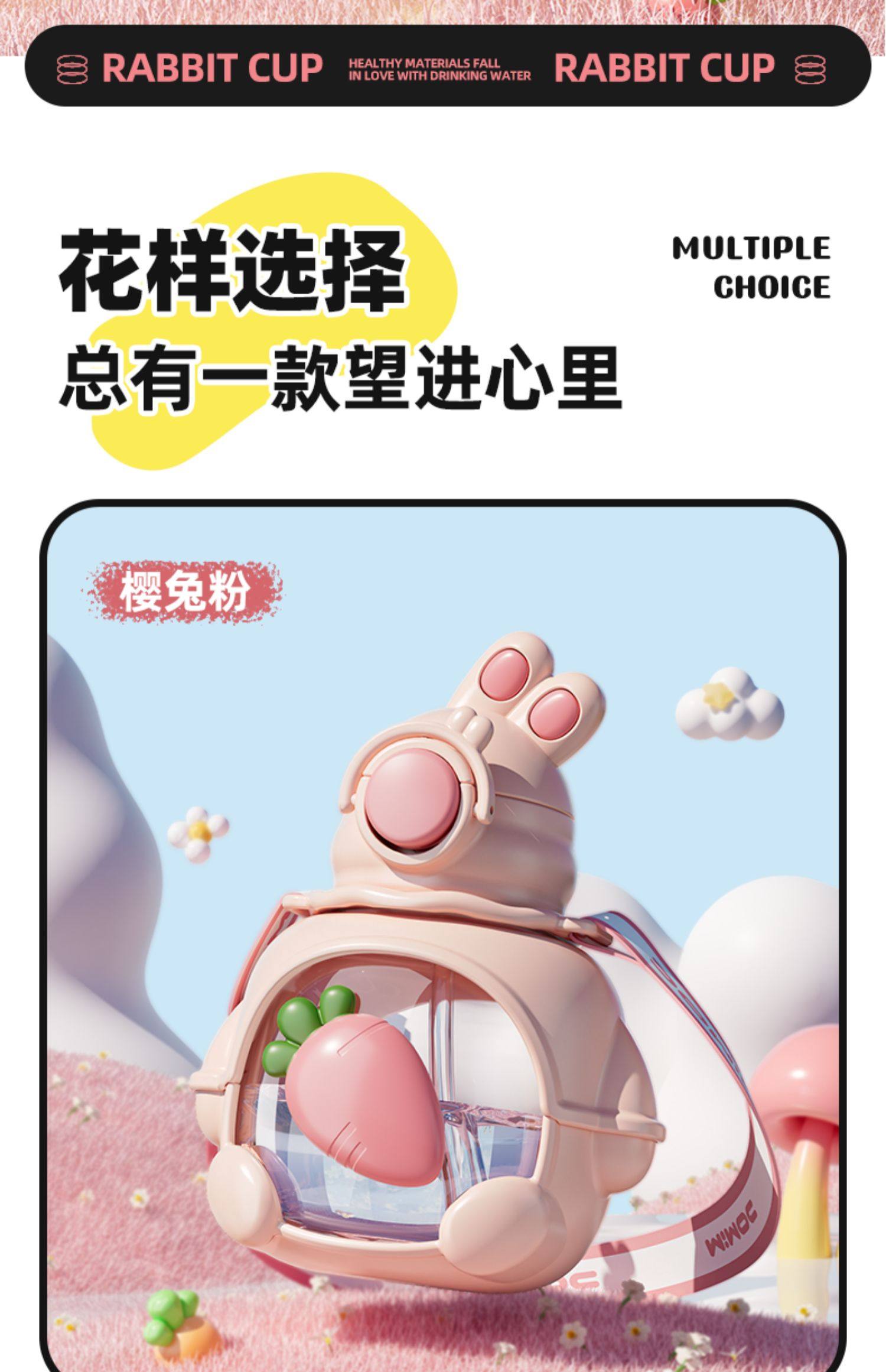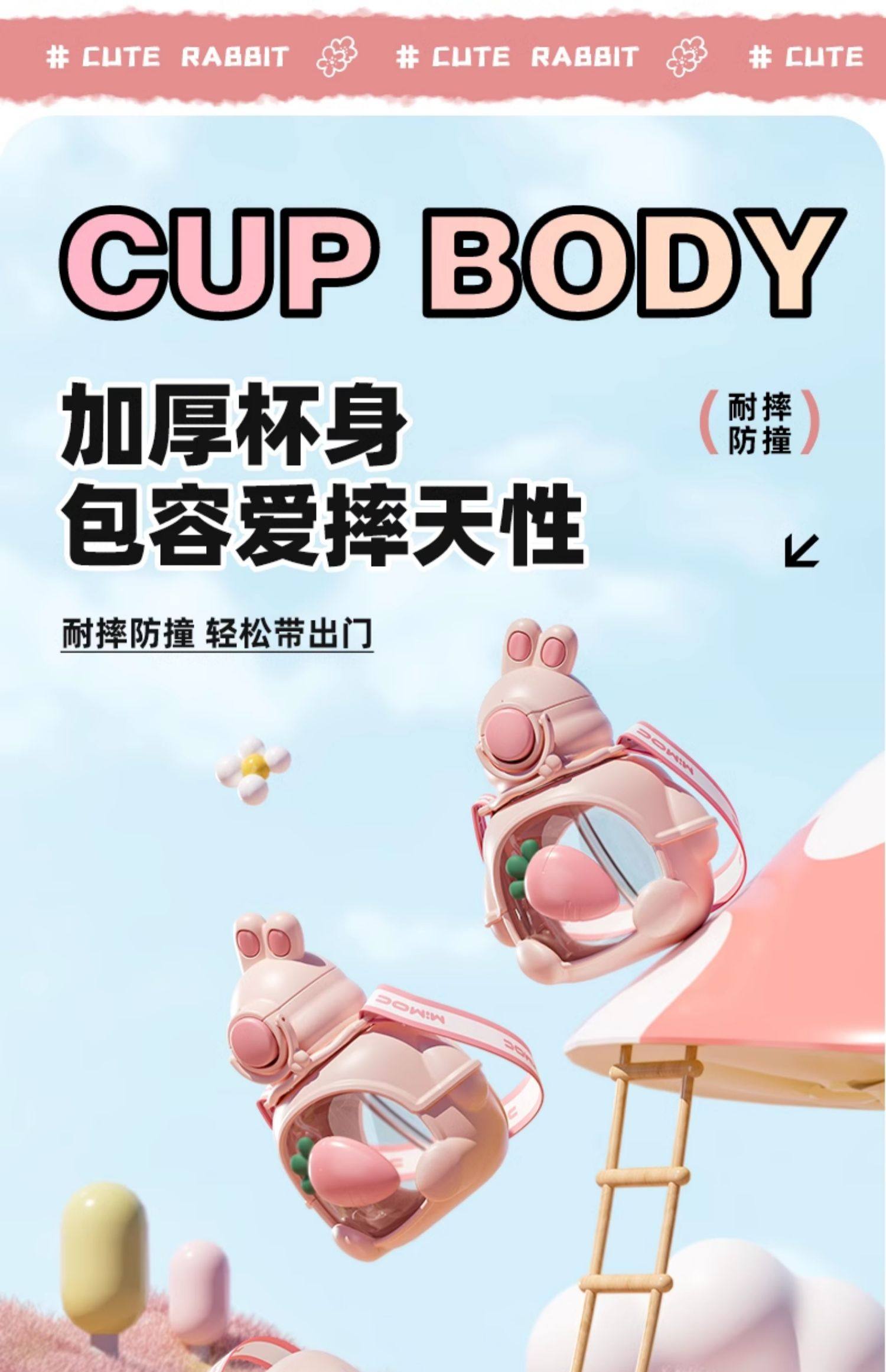 • 商品名称:儿童可爱兔子水杯女生高颜值宝宝带吸管夏季水壶学生上学专用杯子