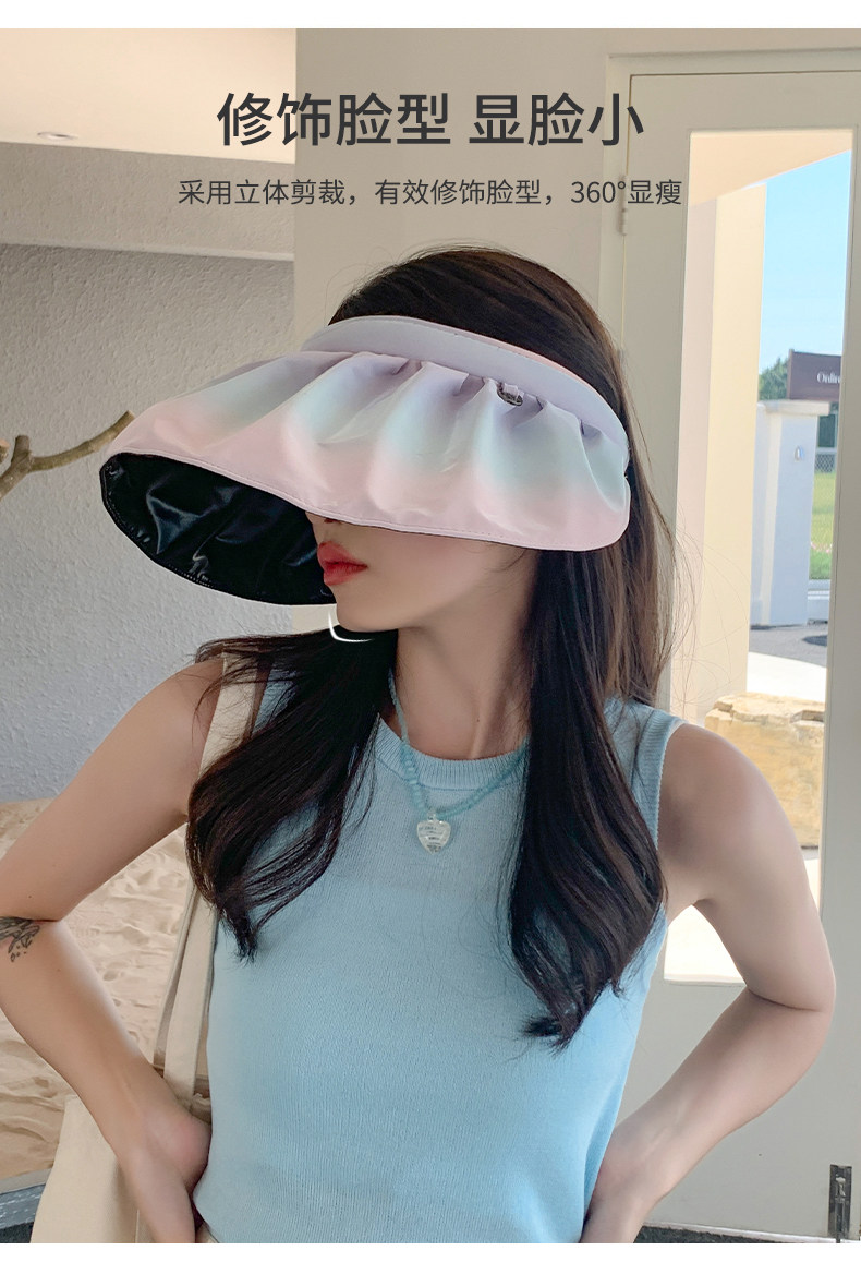 防晒帽女夏季防紫外线贝壳遮阳帽空顶太阳帽子大檐夏天空顶可折叠